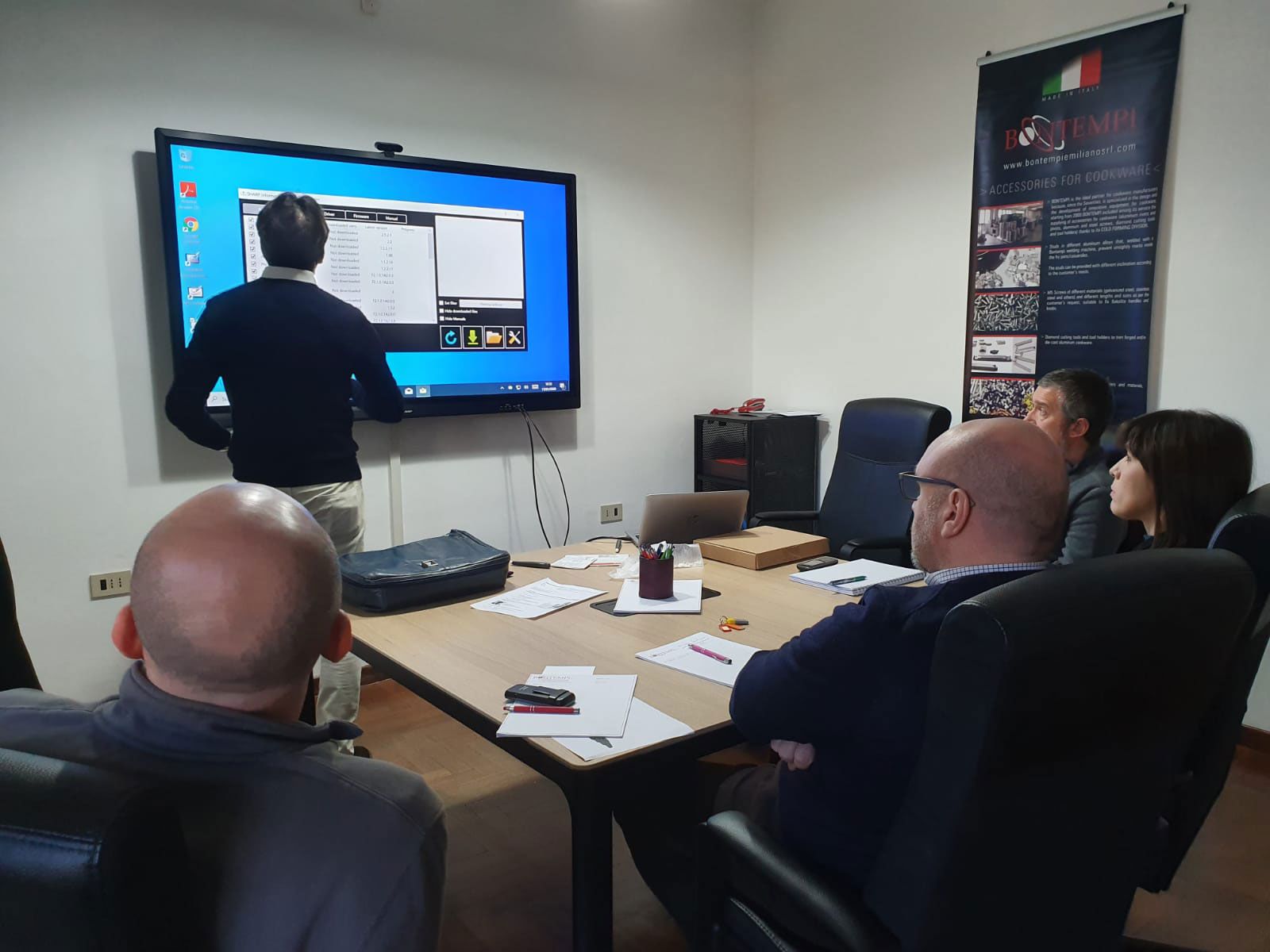 • El equipo de Asistencia, compuesto por comerciales formados técnicamente dentro de la empresa, listos para proporcionar soluciones a medida tanto en la fábrica del cliente como a través de videoconferencia. Para la instalación y el training de nuestras máquinas disponemos de técnicos mecánicos especializados y programadores que pueden proporcionar asistencia incluso a distancia a través del Tele Service gracias al modem instalado sobre las máquinas