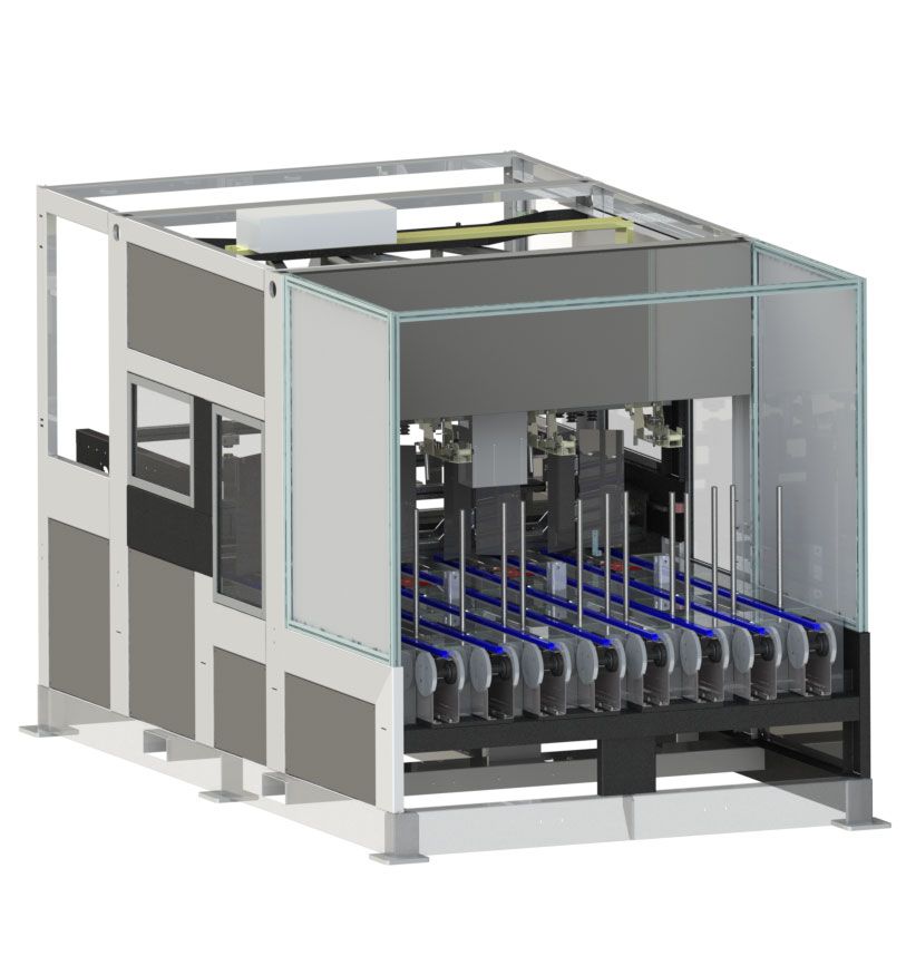 Caricatore automatico, elettronico, autodimensionante e con doppio magazzino di carico dischi, consente di caricare dischi di alluminio bianchi o verniciati, dischi in acciaio e in trimetallo, con diametro massimo di 550 mm. Può essere interfacciato con presse meccaniche, oleodinamiche e di forgiatura. Stazione per il controllo di eventuali dischi doppi, con cassetto di raccolta che consente di rimuoverli senza arrestare il ciclo automatico. Elevata capacità oraria di carico dischi. Sistema di lubrifica per dischi grezzi opzionale.