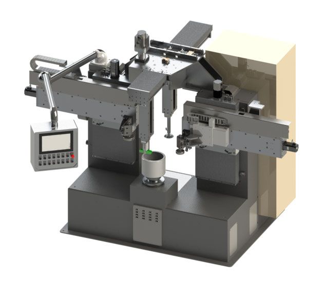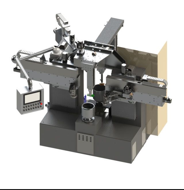 Macchina elettronica per la produzione di pentole a pressione in alluminio. Tutte le lavorazioni sono eseguite da tre carri a croce, tutti dotati di motori brushless ad assi interpolati. La macchina, nella prima stazione, permette di preparare i fori dei manici tramite un’unità di punzonatura, mentre nella seconda stazione permette di tornire il bordo, piegare la parte superiore del bordo tramite rulli montati sui carri, e infine tornire il bordo interno piegato per formare l’ovale, orientandolo rispetto ai fori dei manici. Grazie al dispositivo di carico e scarico automatizzato, sempre gestito da motori brushless, il macchinario garantisce un’ottima capacità produttiva. Tutta la macchina viene gestita tramite un pannello con funzionalità touch-screen, con possibilità di memorizzare fino a 500 ricette di lavorazione, nelle quali vengono salvati tutti i parametri relativi a carri, caricatore e mandrini. Possibilità di completare la fornitura con un compattatore di trucioli per la raccolta dello sfrido di lavorazione.